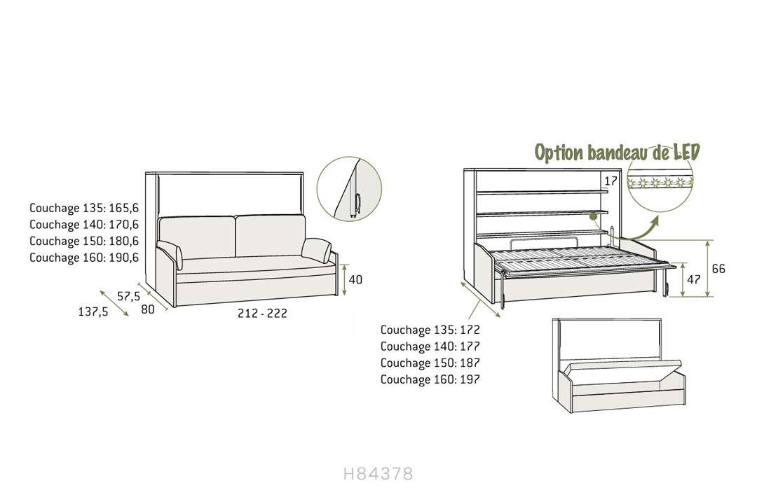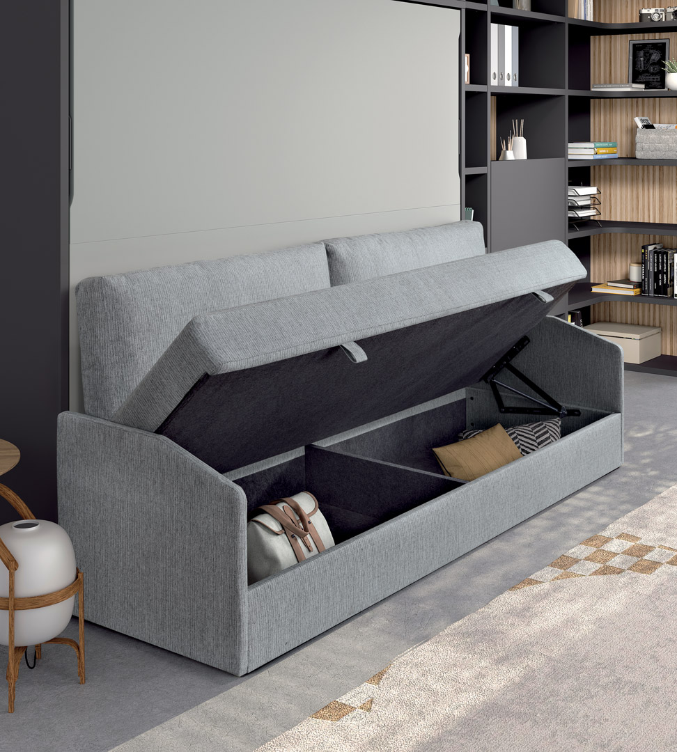 • Horizontal fold-down bed, depth 57.5, with canapé sofa 190 × 150