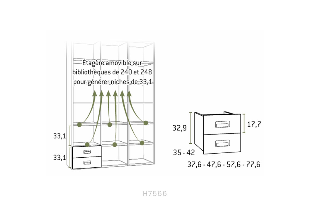 • Drawer unit with 2 drawers for opening 33.1 × 47.6 × 42 in bookcase