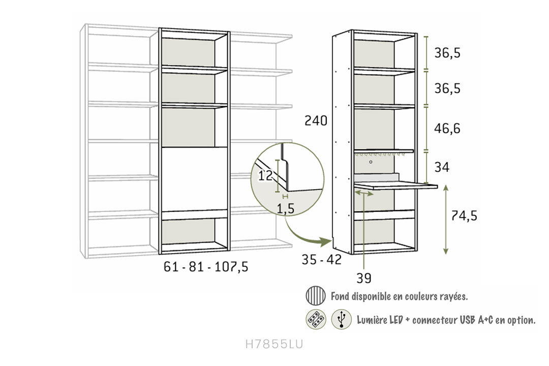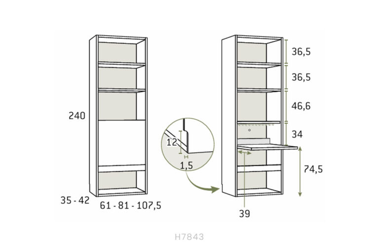 • Left bookcase unit, height 240 × 48 × 42