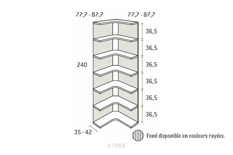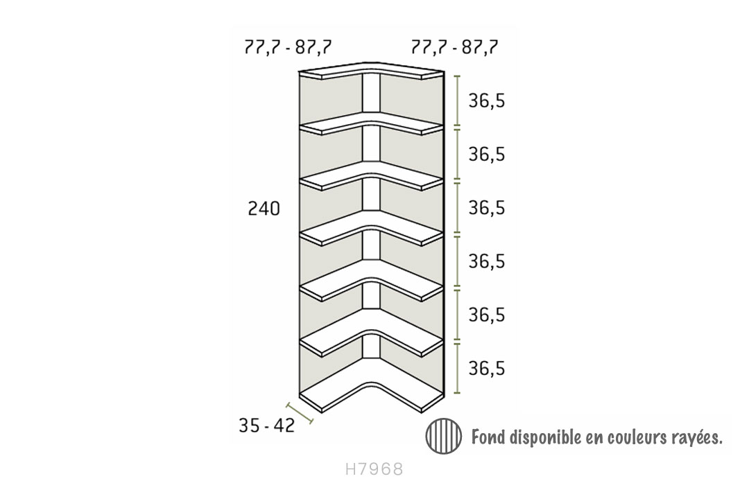 • Corner shelving set with rear panel, height 240