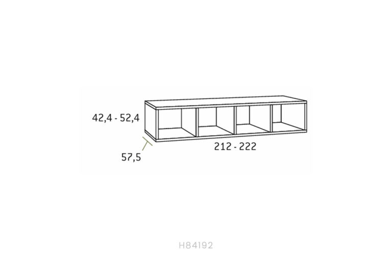 • Shelving over horizontal fold-down bed, depth 57.5 – 52.4 for 150 × 190 bed (special height 59.4 cm)