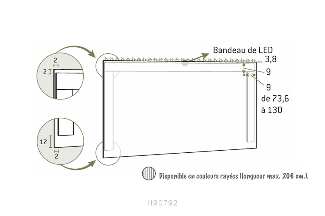 • Headboard with LED light FUELL, adjustable height 73.5–130, width 160.1–200 (special 189 × 130)